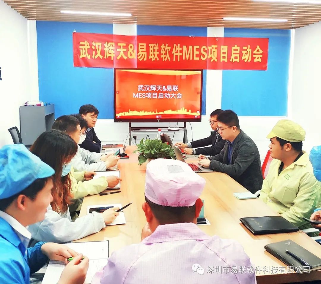 近日,武汉辉天集团MES项目正式启动,辉天集团董事长文总、易联软件黄总、双方MES项目组成员参与会议。